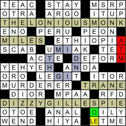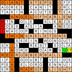 Paolo P. Just want to say I totally fell for that “rebus squares in acronyms in the clues” trick, and I then realized that I like red herrings better when I don’t notice them.