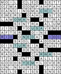 Kranke Clever solve, but sheesh, this grid- lots of googling required! A number of people found this month’s fill on the tougher side.