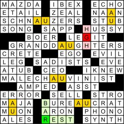 RPardoe WOW – What an excellent construction to summarize the year. I was expecting instructions to go back over the previous 12, not the entire mega meta theme compressed into one 15×15 grid. Thank you!