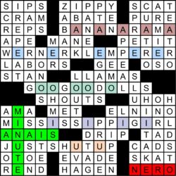 | ANAIS | Nin whose seventh diary volume was published posthumously | MINUTE | 7-___ Abs (program featured in “There’s Something About Maryâ€) |