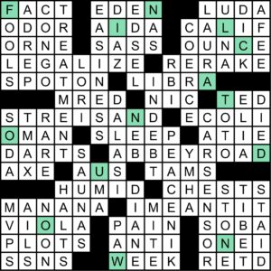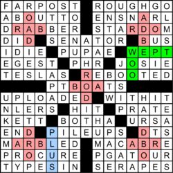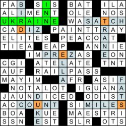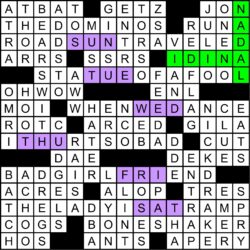 | PAW | “___ Patrol†(kids’ TV show that debuted in ’13) | WEEK | Thirteenth of a quarter, roughly |