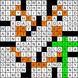 | NEB | #9 on U.S. News & World Report’s “Best States†list: Abbr. | STREISAND | The Cecil B. DeMille Award was her ninth Golden Globe |