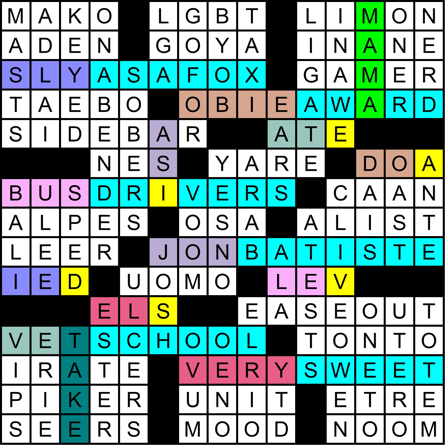 Thanks to Matt Gaffney for blogging the puzzle at Crossword Fiend, where you can rate the puzzle (thanks!) and/or leave a comment.