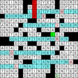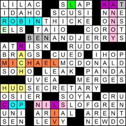 Thanks as well to Ben Chenoweth for filling in for Matt Gaffney and blogging the puzzle at Crossword Fiend, where you can rate the puzzle (thanks!) and/or leave a comment.