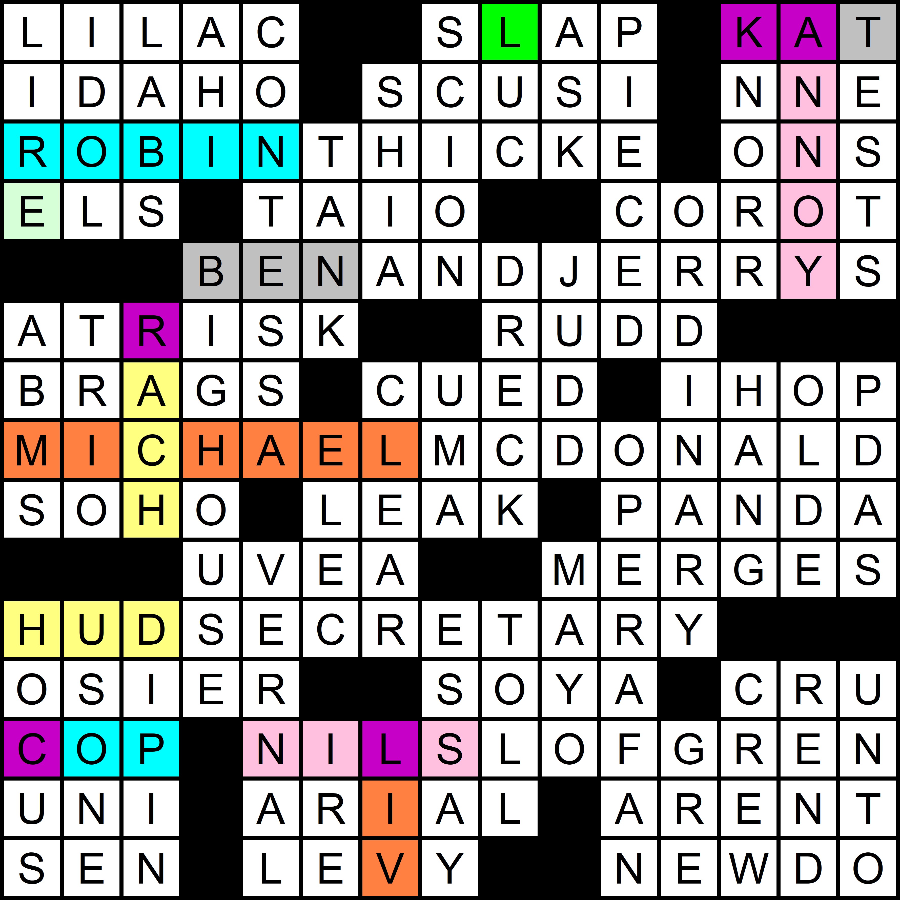 Thanks as well to Ben Chenoweth for filling in for Matt Gaffney and blogging the puzzle at Crossword Fiend, where you can rate the puzzle (thanks!) and/or leave a comment.