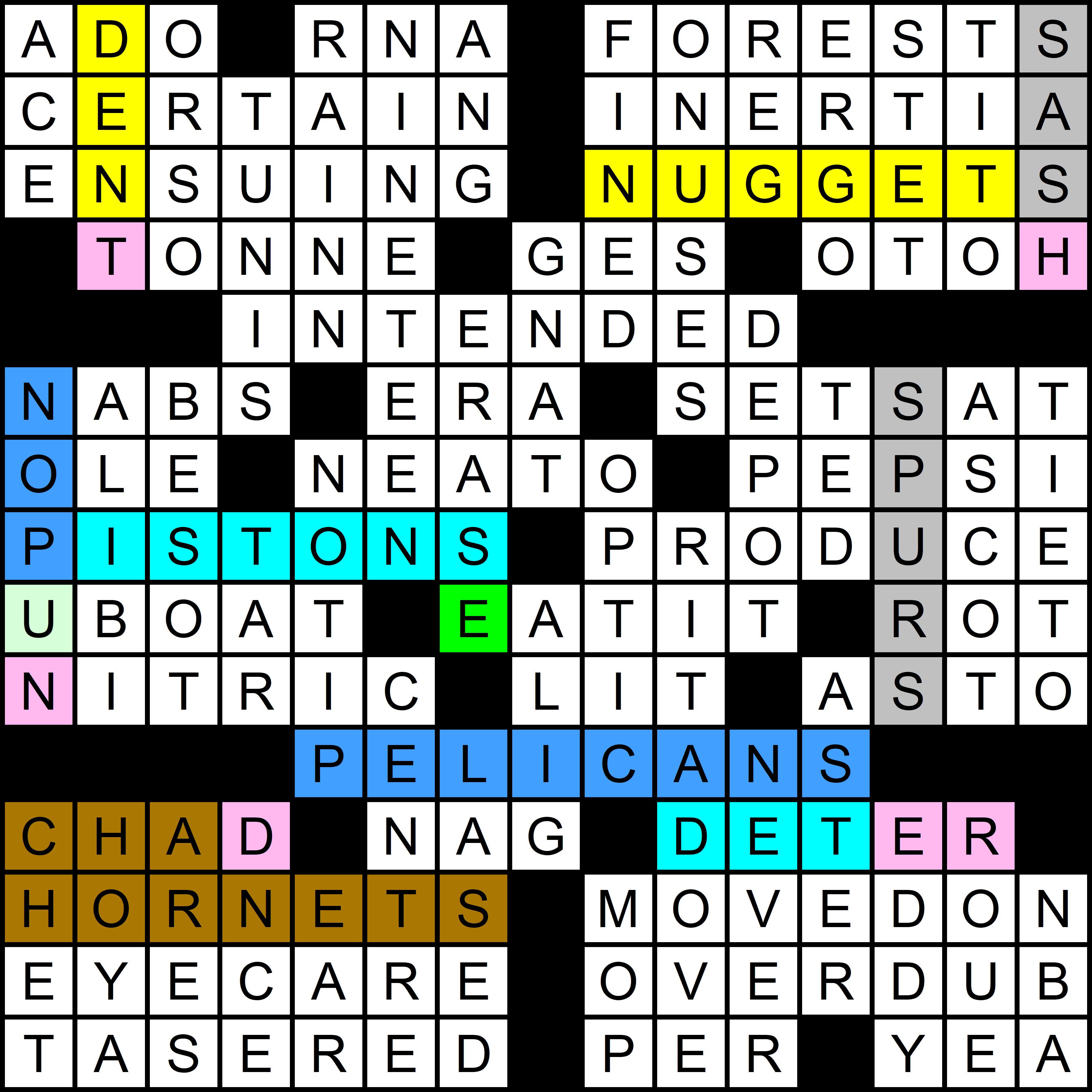 As is also shown below, the first letters of these 12 entries spell out this year’s mega-meta, Lose Yourself, Eminem’s smash hit from 2002. Note that EMINEM also appears in the grid, clued as [Rapper whose name sounds like a candy], as a subtle hint to the meta mechanism.