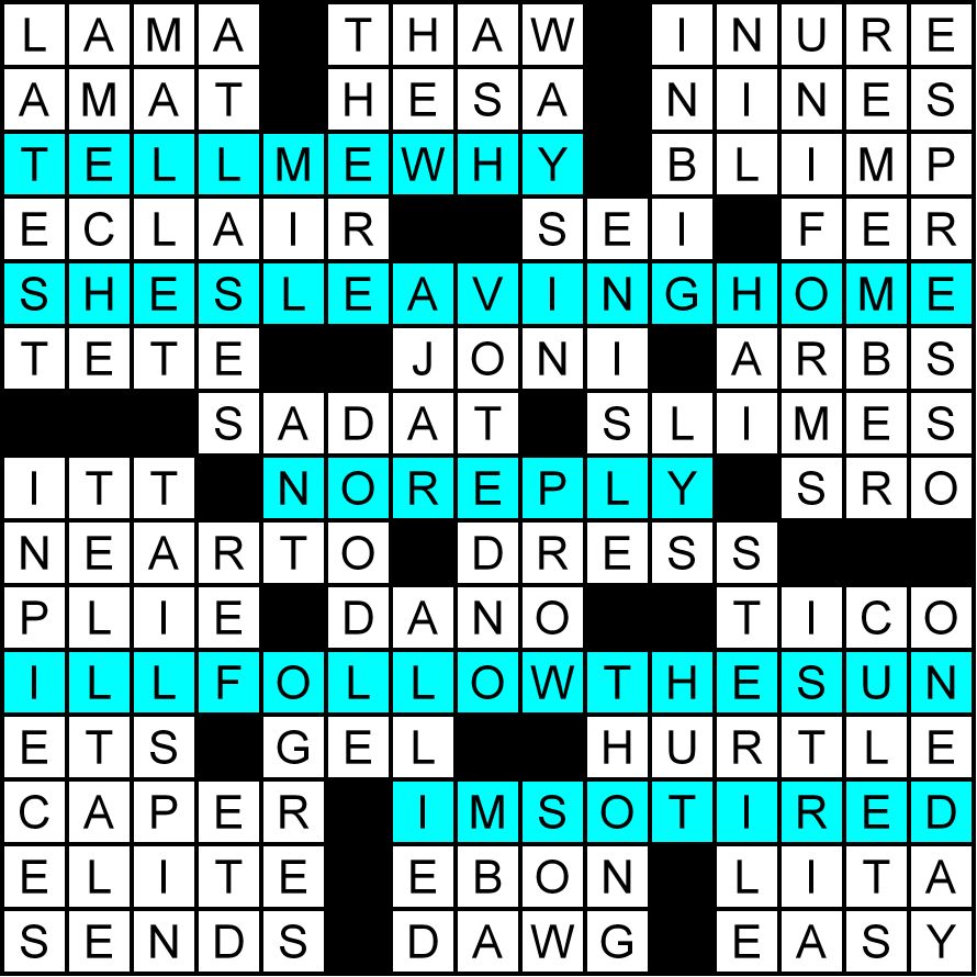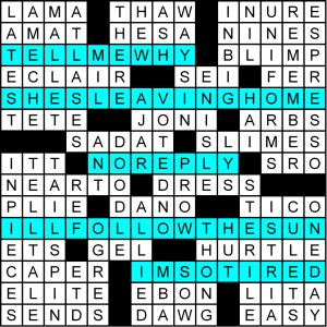 Thanks as always for the feedback and thanks to Matt Gaffney for blogging the puzzle at Crossword Fiend. Some selected solver comments below: